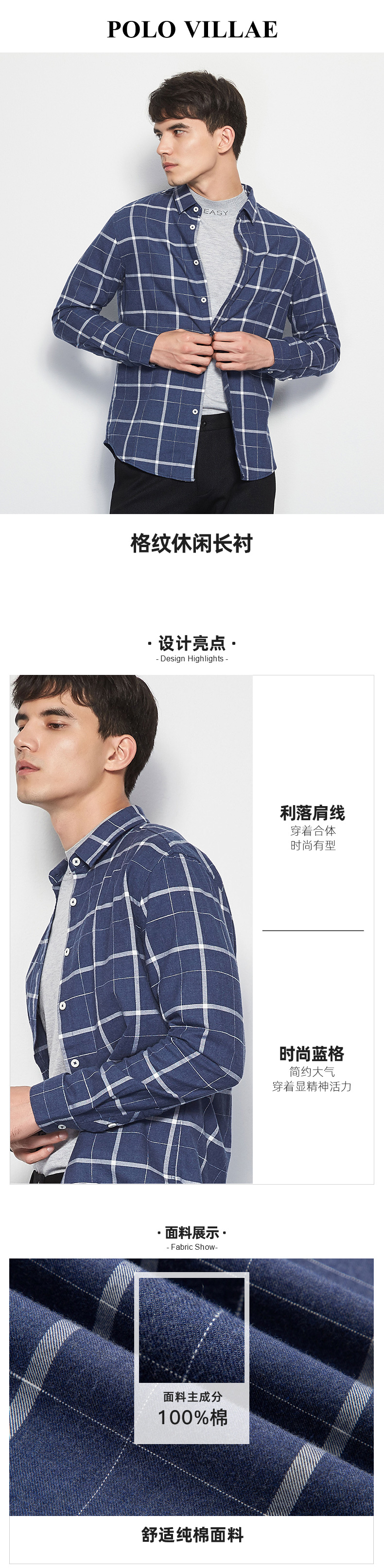 保罗威特(POLO VILLAE)|男式衬衫,-保罗威特(POLO VILLAE) 男士全棉休闲格纹衬衫ADKF128-TG