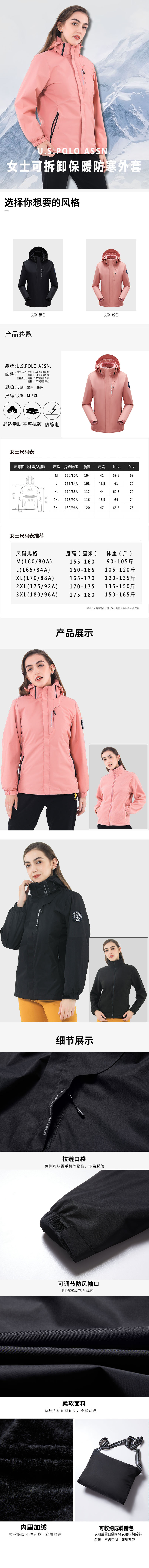 美国U.S.POLO ASSN.女士可拆卸保暖防寒外套 >