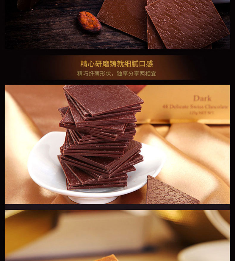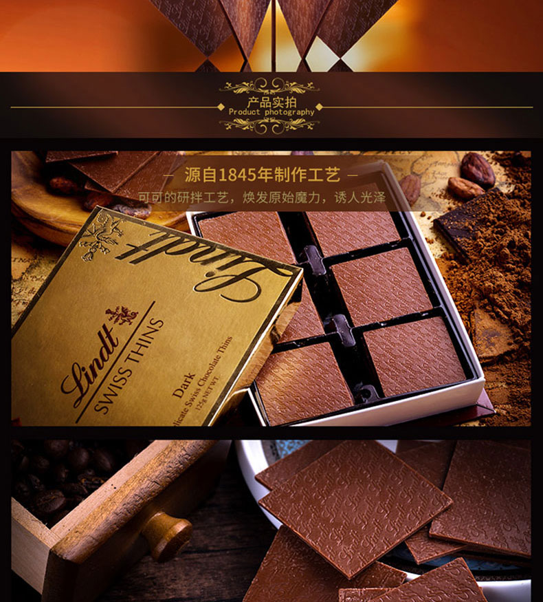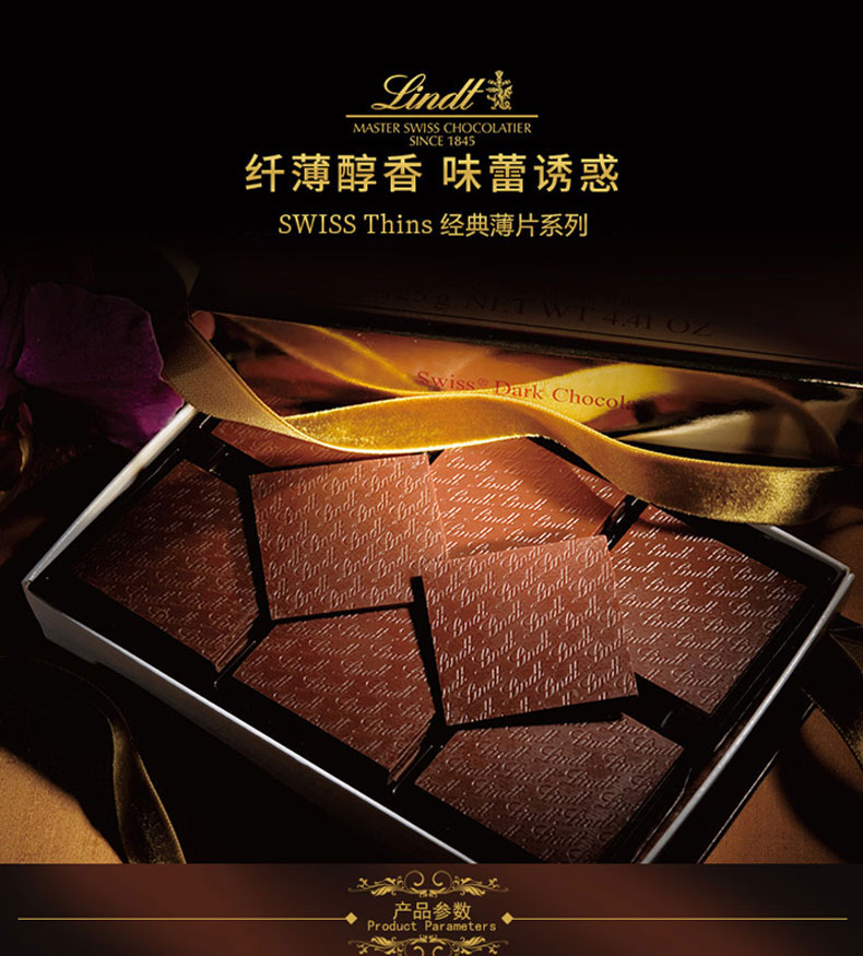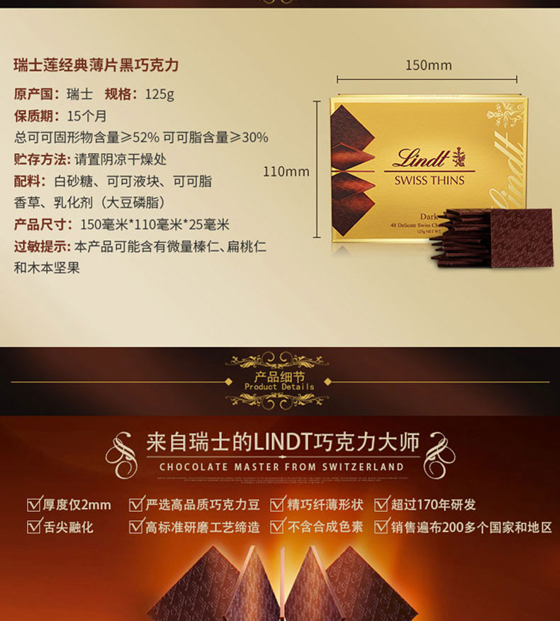 瑞士莲(Lindt)|巧克力,-瑞士莲(Lindt) 瑞士进口 瑞士莲经典薄片黑 125g*3盒