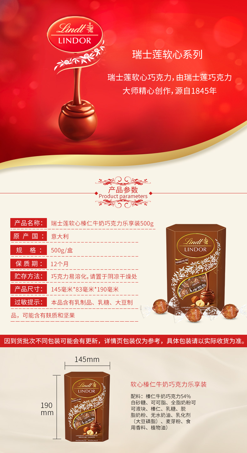 瑞士莲(Lindt)|巧克力,-瑞士莲(Lindt) 意大利进口 瑞士莲软心榛仁巧克力乐享装500g